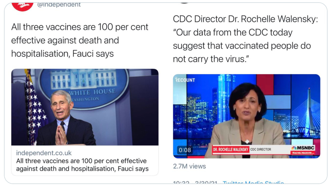 This obviously hasn’t panned out as they thought it would and that mixed messaging (e.g. masking up the fully vaccinated) has caused irreparable harm.